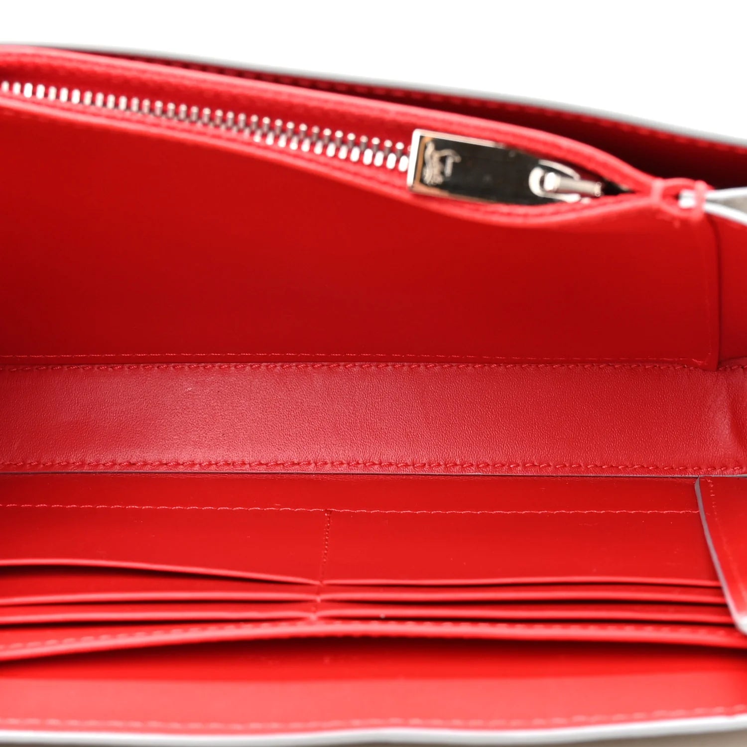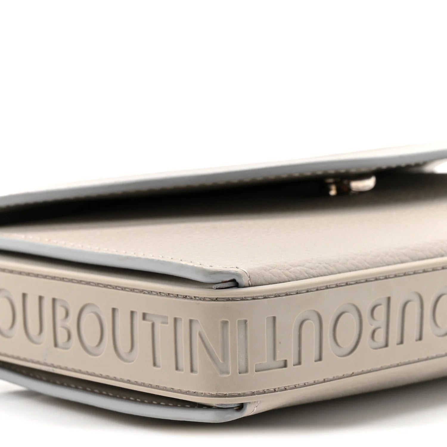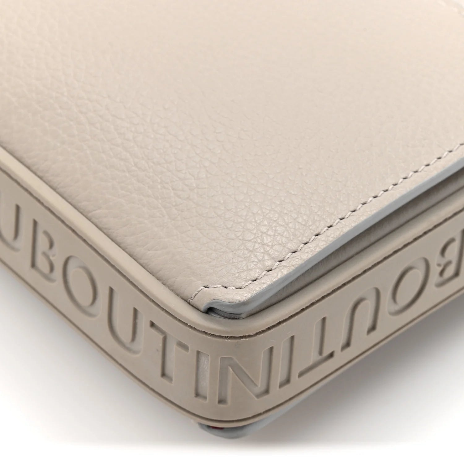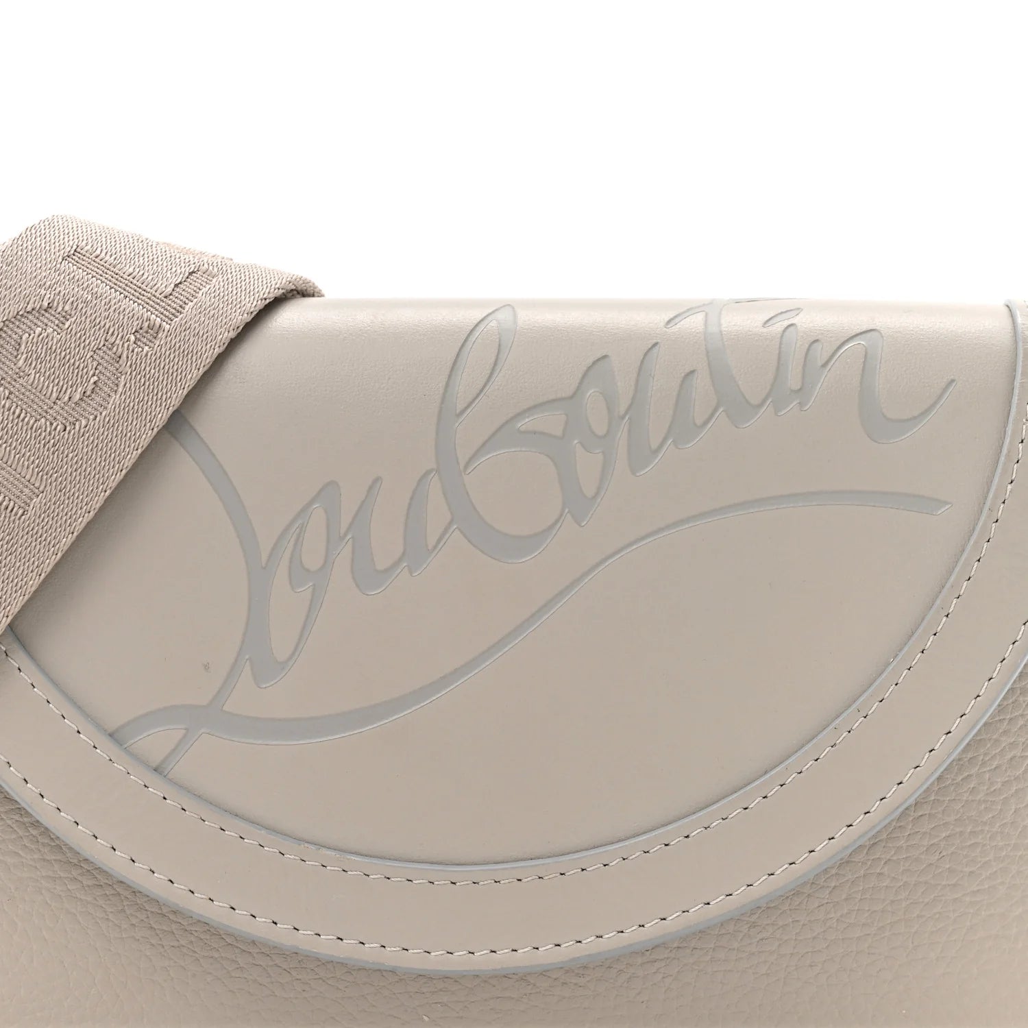 This is an authentic CHRISTIAN LOUBOUTIN Calfskin Explorafunk Wallet On Strap on Goose. This wallet is crafted of grained calfskin leather in grey with a smooth, logo embossed crossover flap and rubber logo embossed trim. The bag features a removable adjustable canvas logo strap and opens with a magnetic snap to a parititoned red leather interior with card slots, a patch pocket, and zippered compartment.