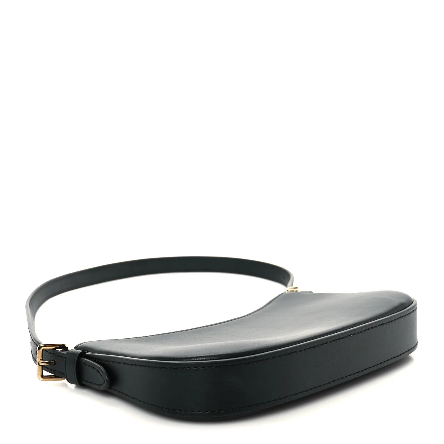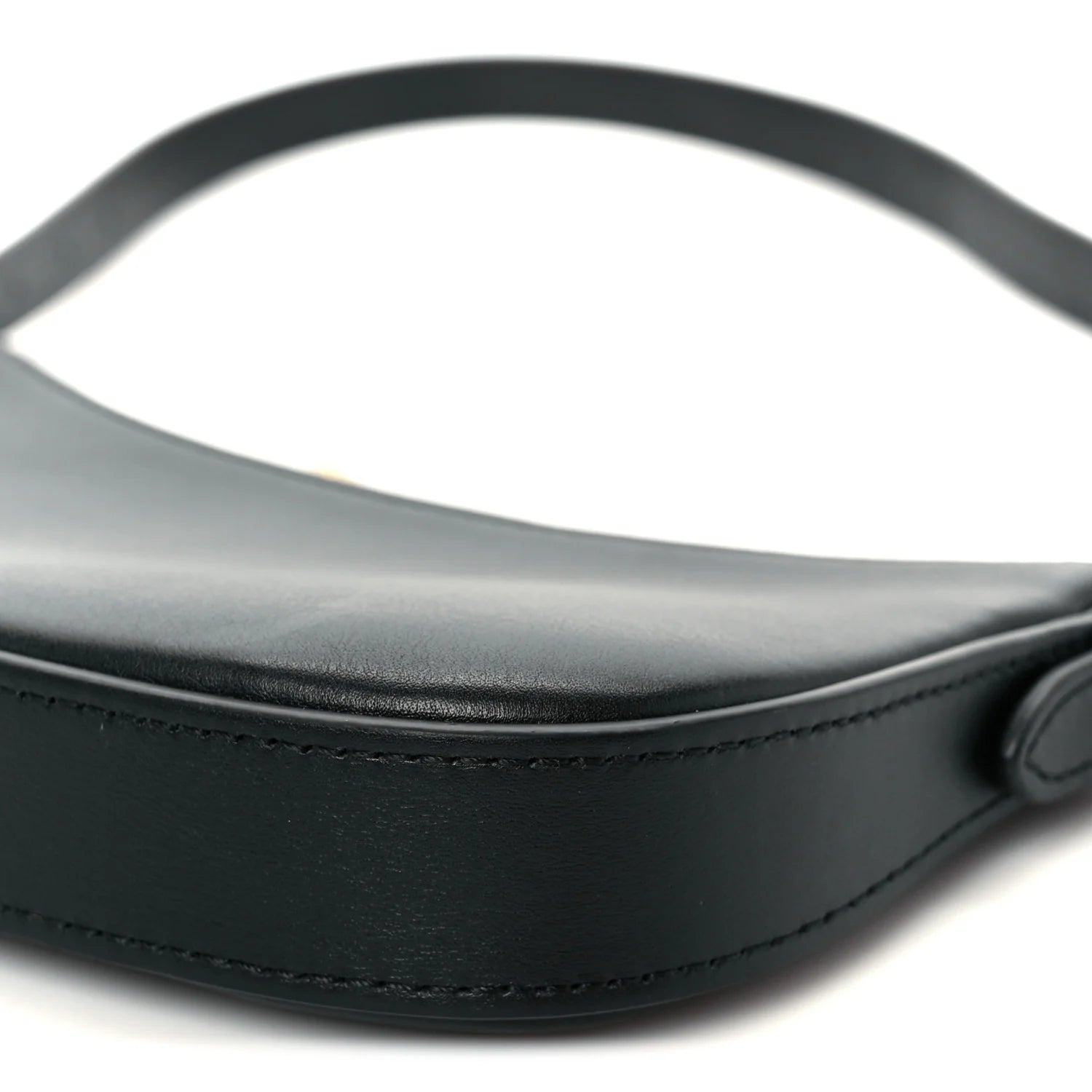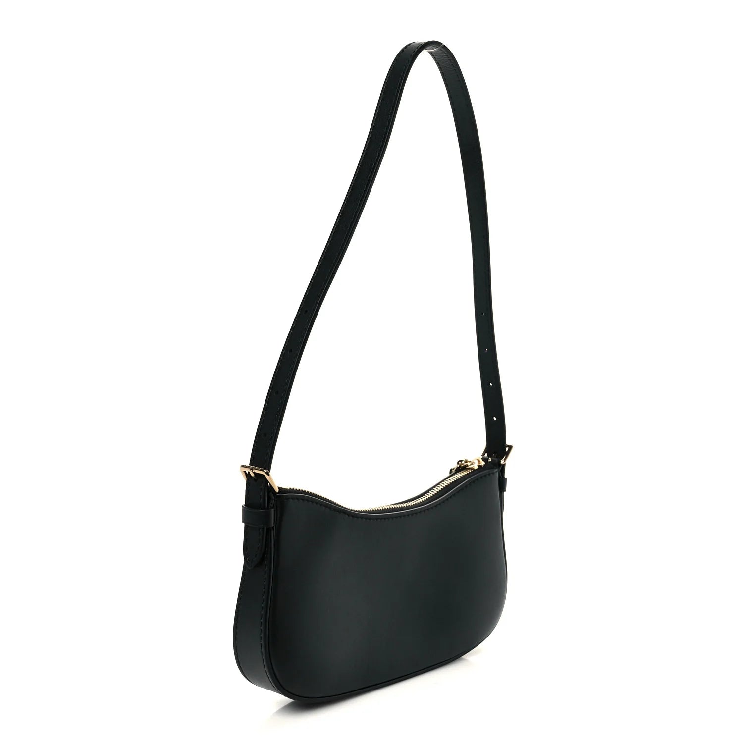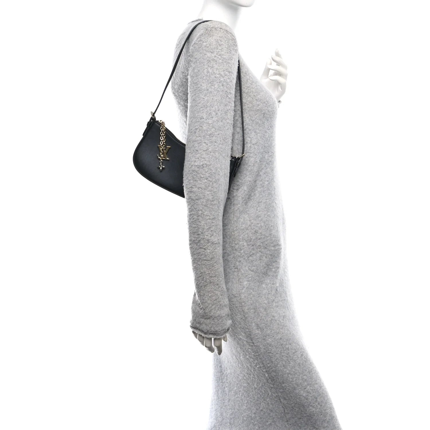 This is an authentic LOUIS VUITTON Calfskin LV Bloom Pochette in Black. This chic handbag is crafted of smooth calfskin leather in black. The bag features gold and silver toned hardware and a gold LV logo. The top zipper opens to a black microfiber interior.
