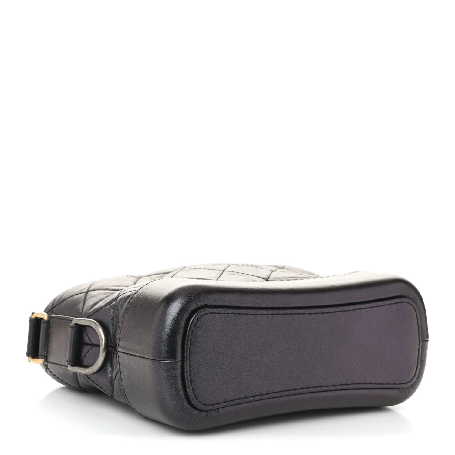 Iridescent Aged Calfskin Quilted Small Gabrielle Hobo Black