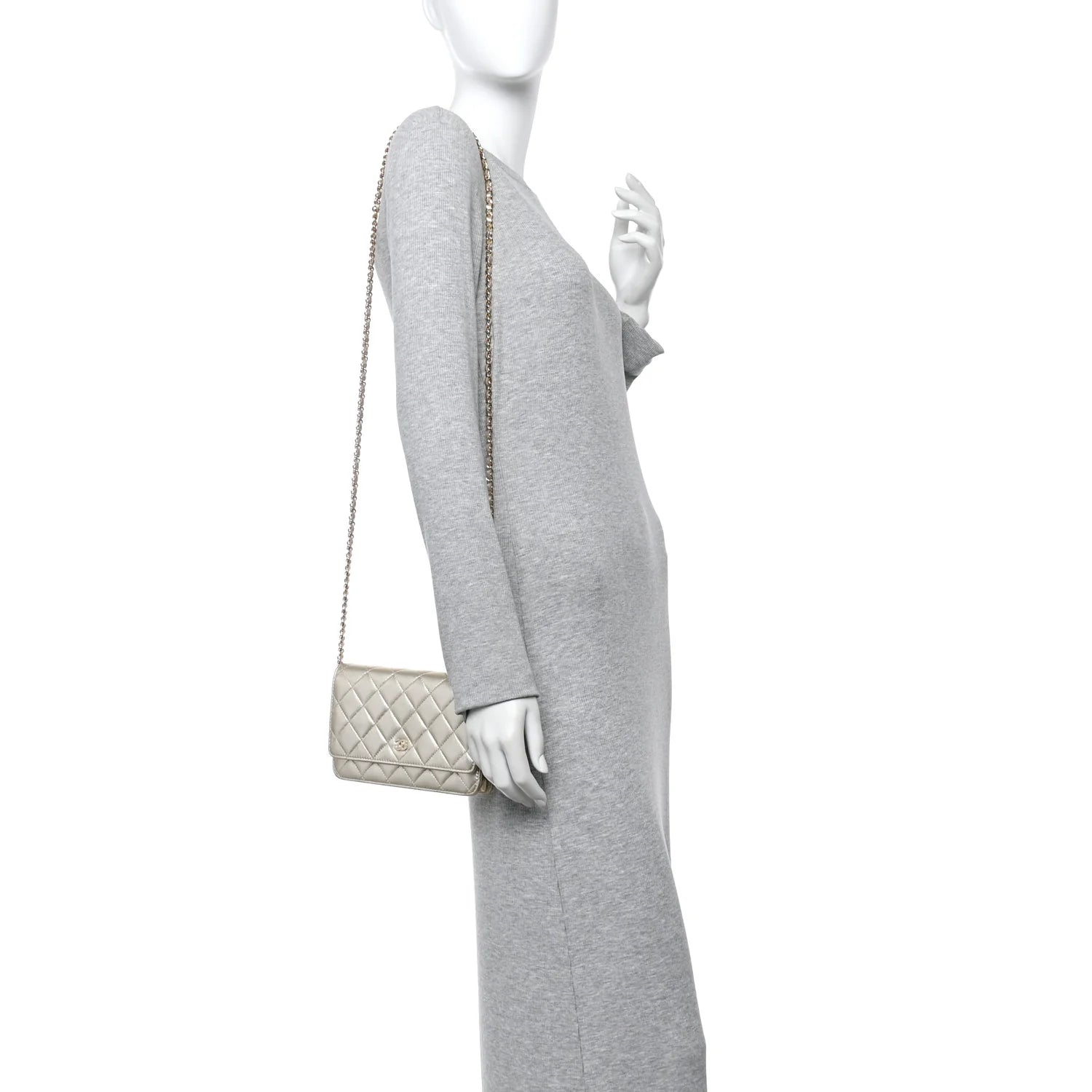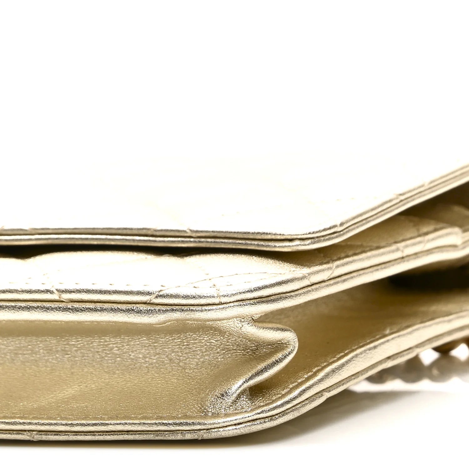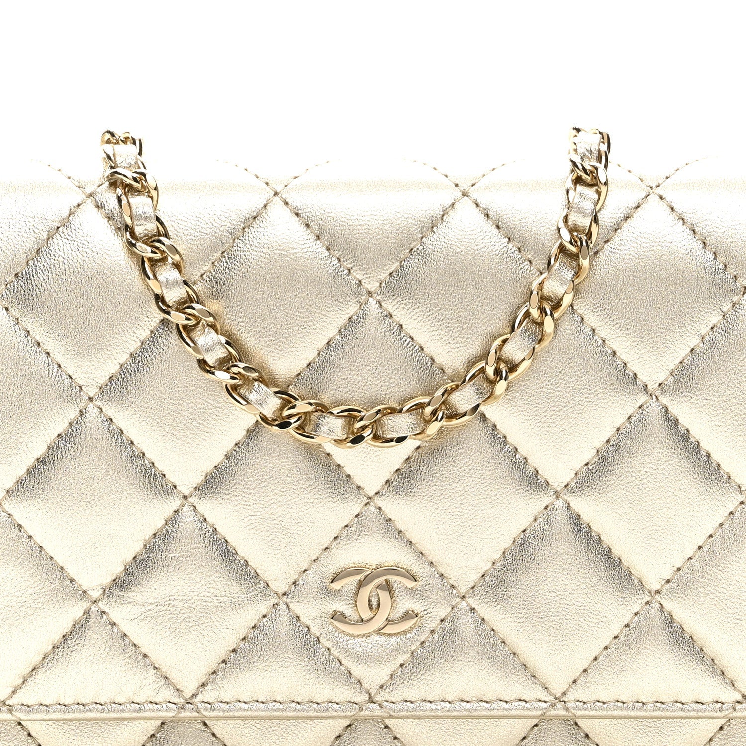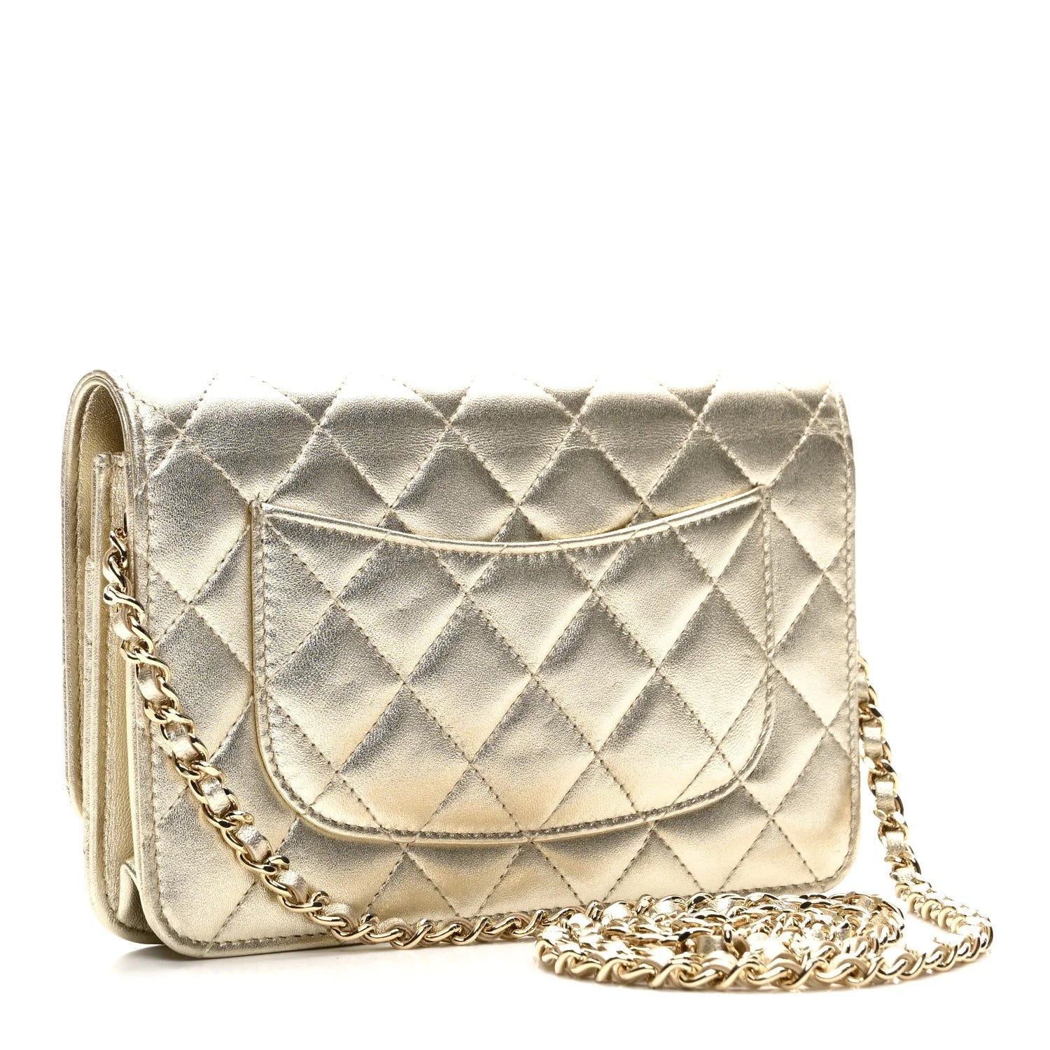 Metallic Lambskin Quilted Wallet on Chain WOC Gold