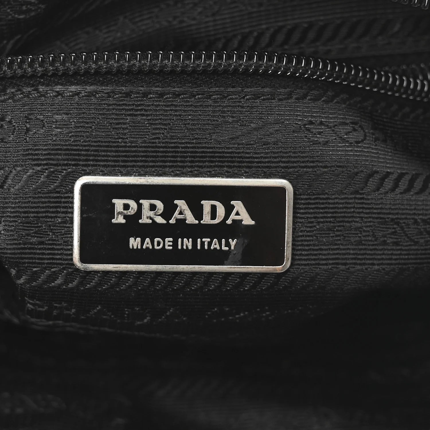 This is an authentic PRADA Tessuto Nylon Triangle Shoulder Bag in Black. This rectangular shoulder bag is crafted of black nylon and Saffiano leather trim. It features a nylon adjustable strap, silver hardware, and a front zipper pocket with a metal triangle metal triangle Prada logo. The crossbody top zipper opens to a black Prada logo jacquard interior with a zipper pocket.