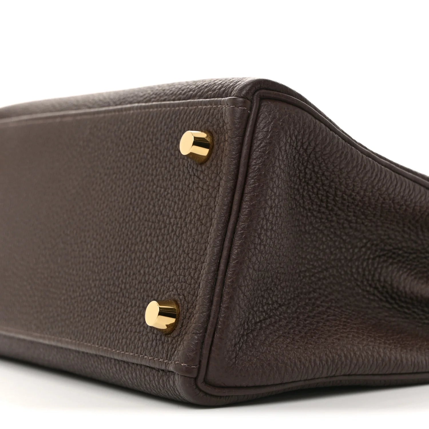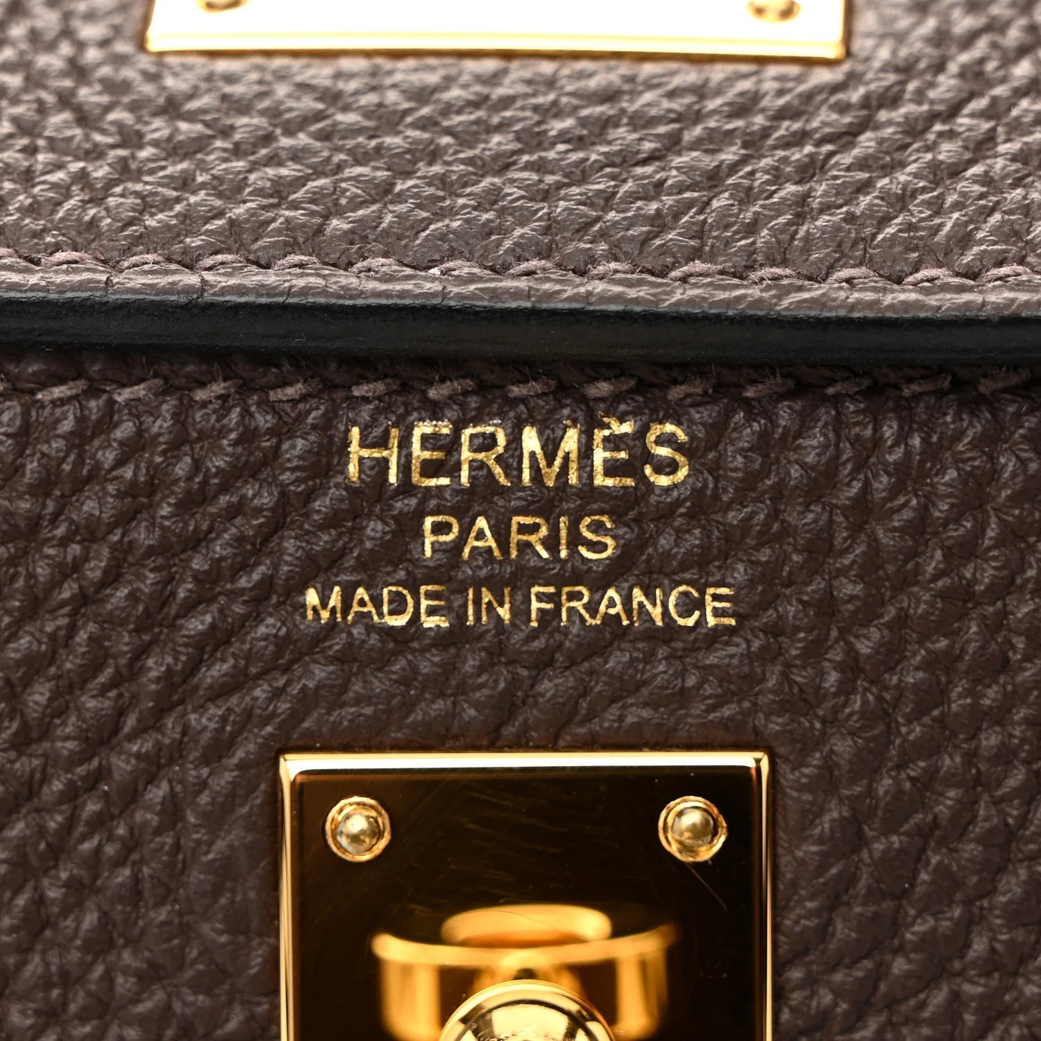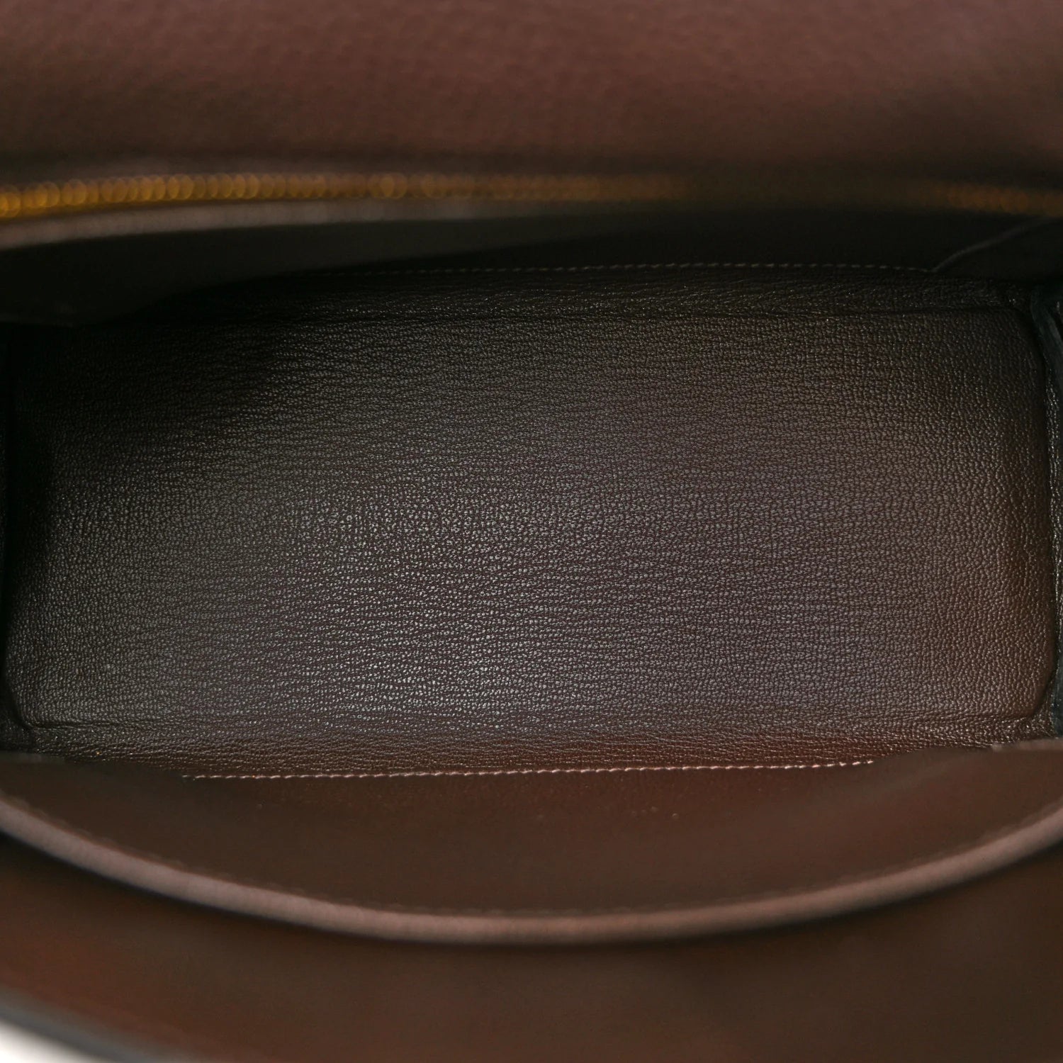 This is an authentic HERMES Togo Kelly Retourne 25 in Ebene. This chic and iconic handbag is expertly handcrafted of grained calfskin leather in brown. The bag features rolled leather top handles, a short front flap with a strap closure with polished gold plated hardware including a padlock and keys, as well as an optional shoulder strap. The top flap opens to a goatskin leather interior with zipper and patch pockets.